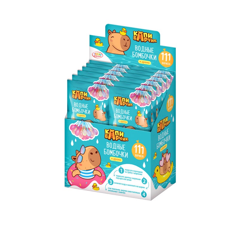 КОНФИТРЕЙД КАПИБАРЧИК Драже с игрушкой водные бомбочки 1кор*8бл*12шт,5г.
