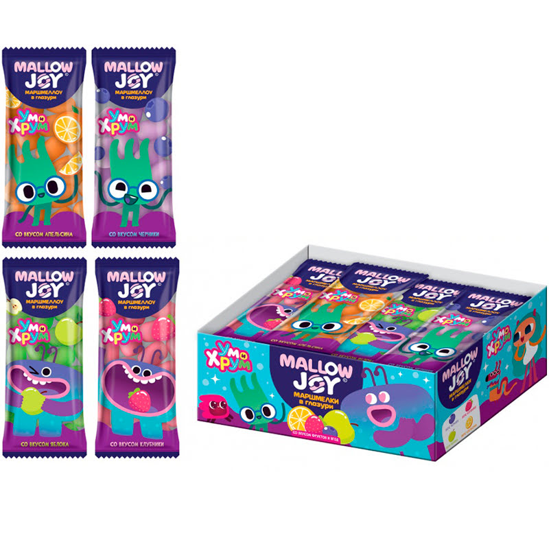 УМ И ХРУМ MALLOW JOY Маршмеллоу в глазури со вкусом апельсина, яблока, клубники, черники 1кор*20бл*30шт, 14гр